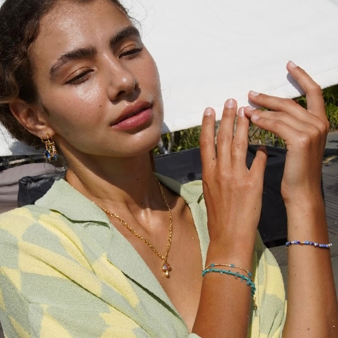Gold vermeil is a technique where gold is applied to sterling silver. Gold vermeil uses the same plating technique to standard plating but has a thicker layer of gold, the plating is required to be 2.5 microns thick. This is 5 times thicker than normal gold plating therefore making it far more long-lasting and durable than gold plating. Gold Sister's plating is 18K gold.