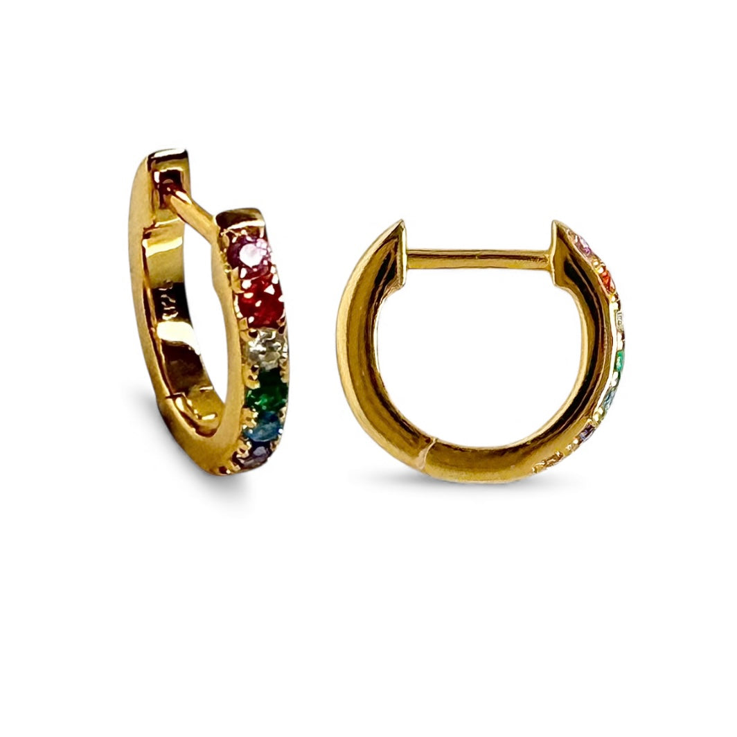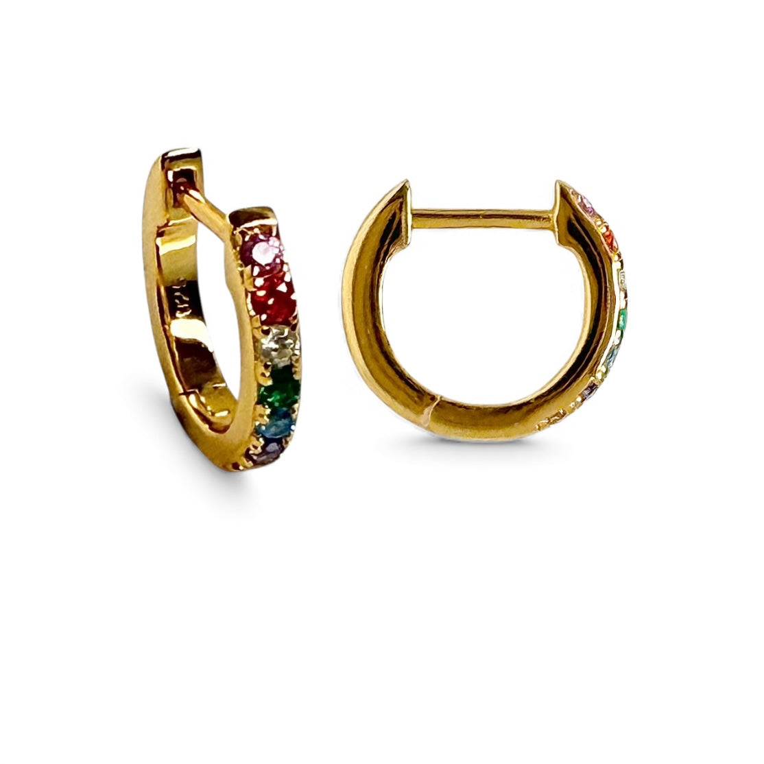 Cute little rainbow huggie earrings, Perfect for second hole or worn as a chic single pair.