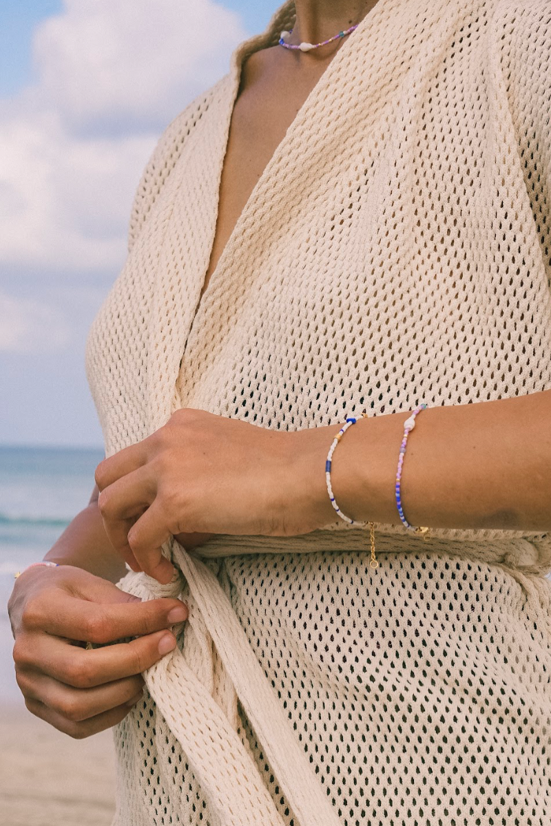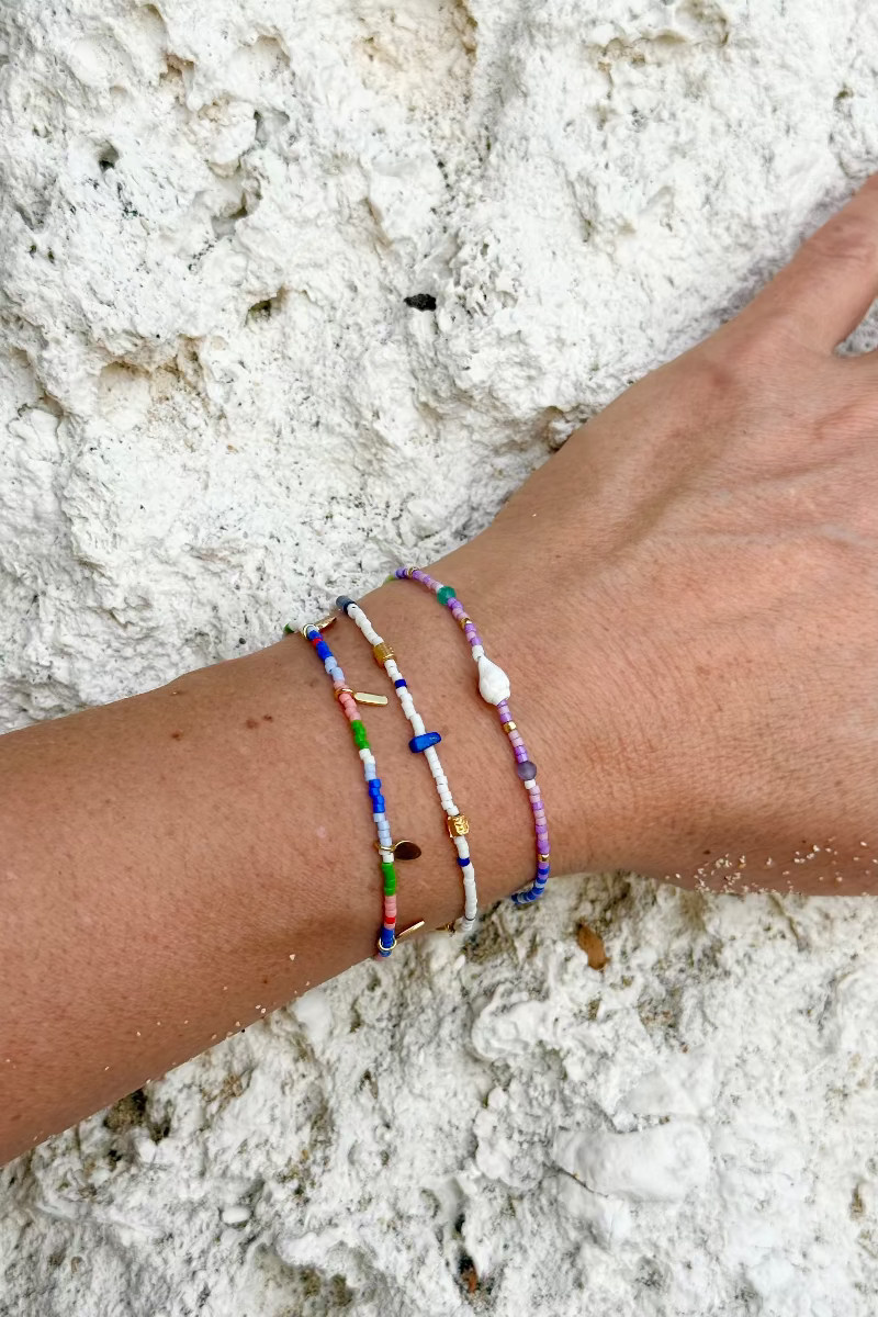 Cool, dreamy tones in a playful shell bracelet. Stack or wear alone.